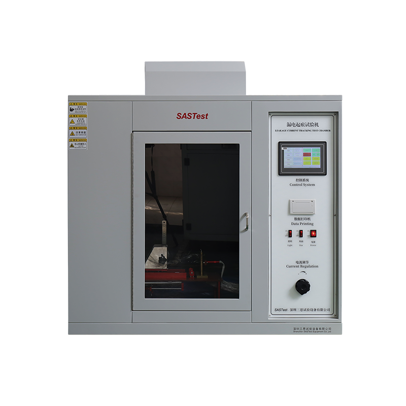 漏電起痕試驗箱用于電器產品受潮濕和雜質環境的影響下,不同極性的帶電部件之間或帶電部件與接地金屬部件之間可能會引起絕緣上的漏電,產生的電弧對電器造成擊穿短路或由于放電使材料蝕損,甚至引燃導致火災。本試驗儀器就是模擬上述情況對絕緣材料進行的一種破壞性試驗,用以測試和評定在規定電壓下,絕緣體在電場和含雜質水作用時的相對耐漏電起痕性。適用于電工電子產品,家用電器的固體電器絕緣材料及其產品,如:繼電器插座、轉換開關蓋、接觸器軀體等。